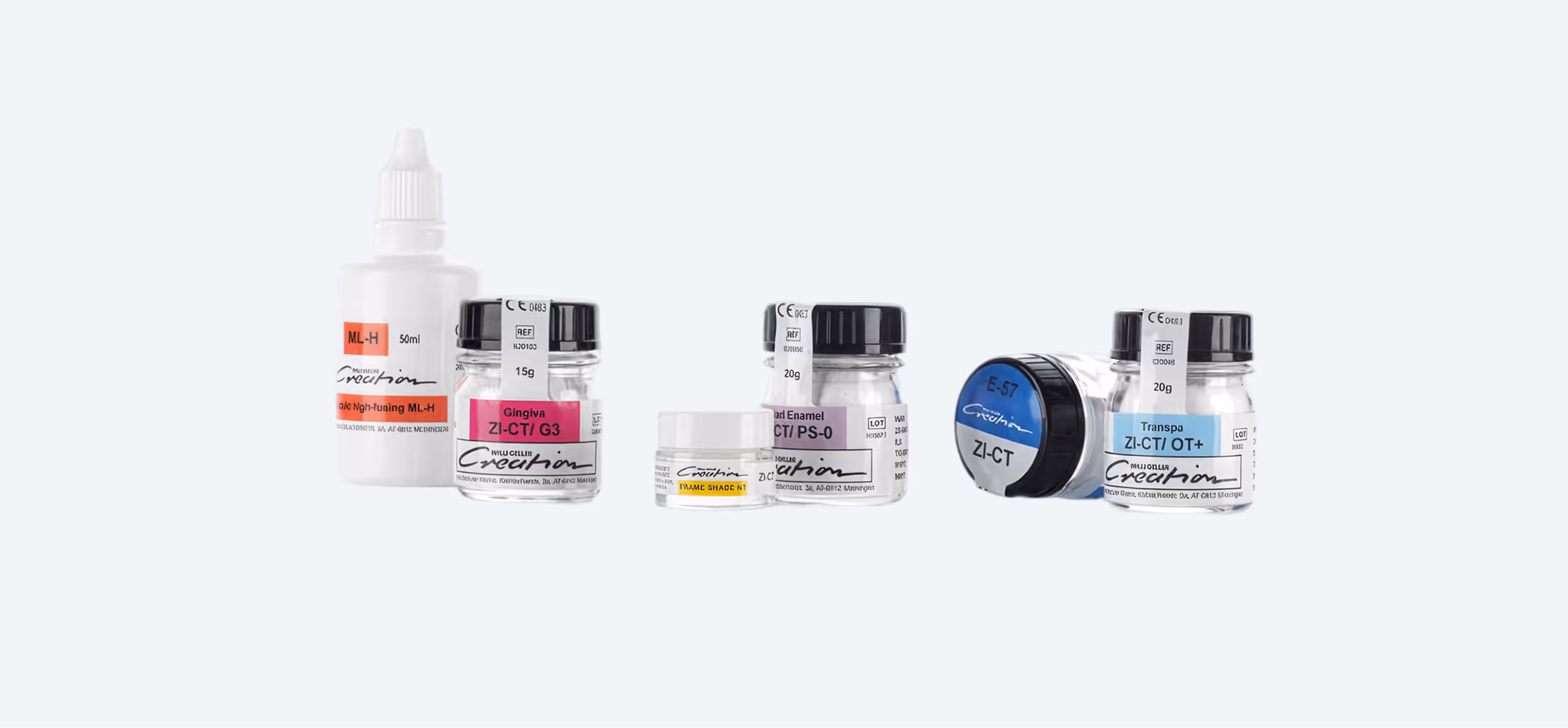 De naam "Creation" staat voor hoogwaardige en esthetisch verfijnde dentaalporseleinen. Voor fronttanden of molaren – voor kronen, facings, inlays, onlays, bruggen of implantaten. De Creation productlijnen zijn extreem betrouwbaar in gebruik, expressief in de kleurwerking en briljant in eindresultaat.