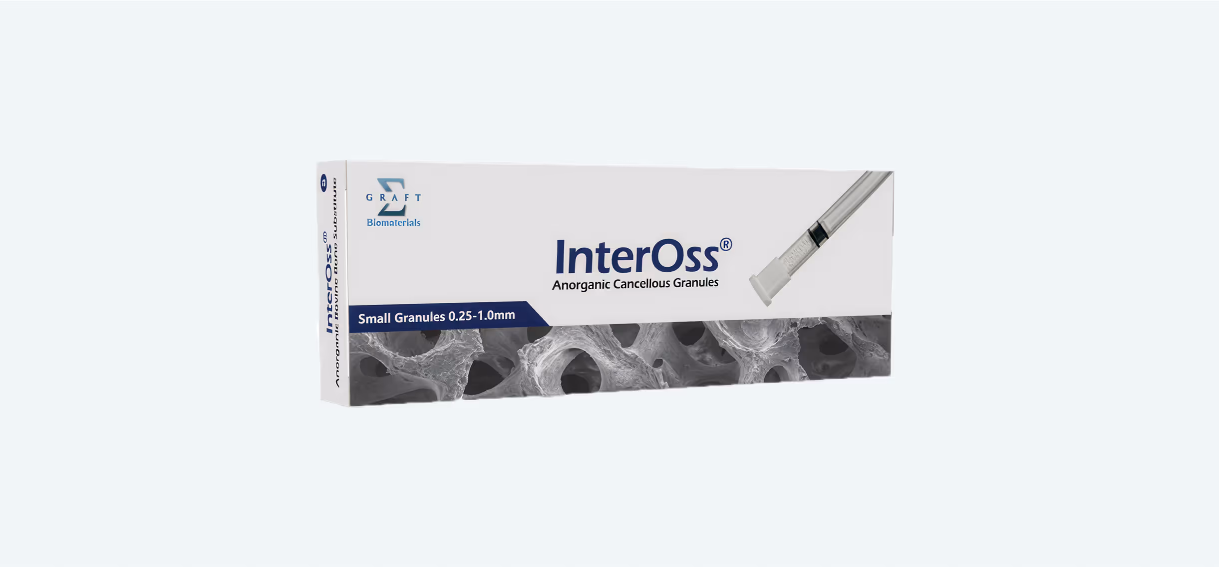 Naast de korrels in potjes biedt SigmaGraft ook InterOss® Syringe. De spuit is voorzien van een applicator welke is ontworpen om InterOss®-korrels nauwkeuriger af te leveren op de beoogde plaats van behandeling, zonder dat er andere steriele instrumenten moeten worden gebruikt. Door de zuiger terug te trekken en vervolgens naar beneden te drukken kunnen de InterOss® korrels worden bevochtigd met het bloed van de patiënt of met een steriele fysiologische zoutoplossing. Een verwijderbare filterdop voorkomt dat de korrels uit de spuitachtige applicator vallen tijdens opslag en bevochtiging.