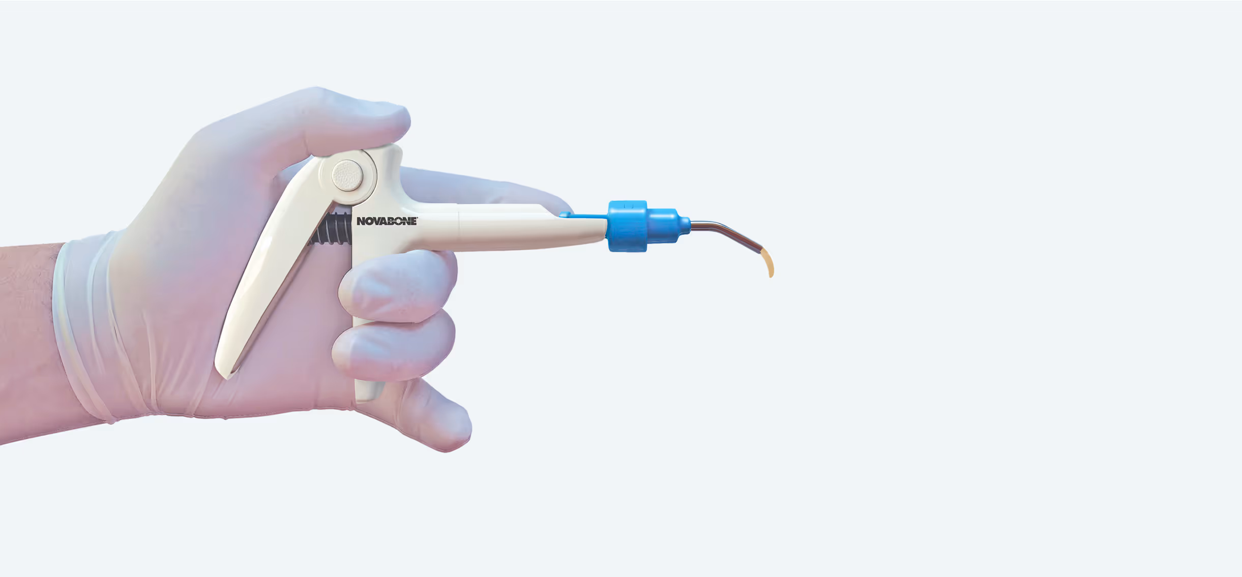 De synthetische bioactieve Novabone® putty zit in een handige cartridge met spuittip. Samen met het pistool zorgt Novabone® voor de meest optimale handling. NovaBone® is het enige transplantaatmateriaal ter wereld dat verkrijgbaar is in wegwerppatronen voor éénmalig gebruik. De cartridges vereenvoudigen het doseren van het botsubstituut, vooral op moeilijk bereikbare plaatsen, waardoor minimaal invasieve technieken (en moeilijk toegankelijke defecten zoals defecten bij onmiddellijke implantaatplaatsing en crestal-approach sinusliften) worden vergemakkelijkt. Cartridges zijn verkrijgbaar in verschillende maten en worden gebruikt in combinatie met NovaBone's® cartridge pistool; elke cartridge bevat 0,25 cc of 0,5 cc putty.
