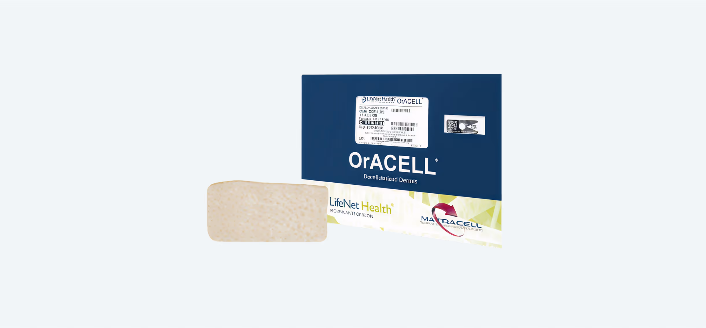 Oracell® is een acellulaire huidmatrix welke uitermate geschikt is voor gebruik in combinatie met GTR en GBR. Daarnaast is OraCell ideaal voor het maken van correcties van het tandvlees.